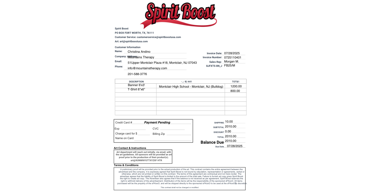 After doing some research, we discovered that this is a nationally reported scam. Spirit Boost LLC has no confirmed relationship with Montclair High School.